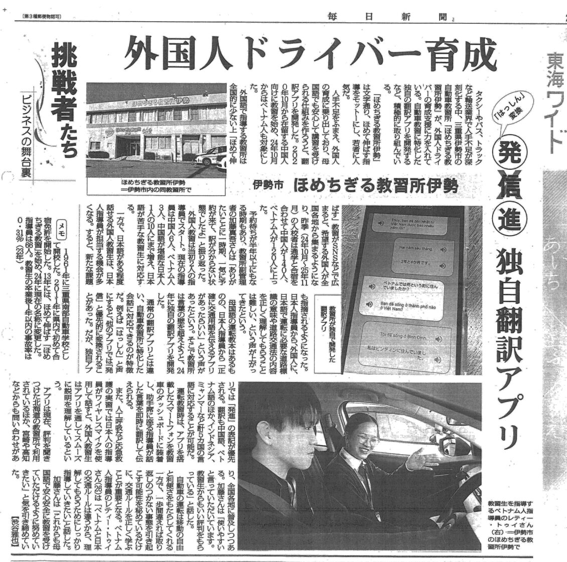 毎日新聞(2026年1月23日付)にて、ほめちぎる教習所伊勢の取り組みが紹介されました。